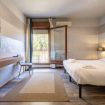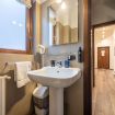 All’interno trovano spazio un ampio ingresso, una cucina attrezzata con angolo cottura, una ampia stanza con zona pranzo, soggiorno e due letti singoli appartati dietro un separé, una camera da letto con letto matrimoniale e una con un matrimoniale e un singolo. Nell’appartamento si trovano poi tre bagni con doccia.