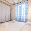 L’appartamento si apre direttamente sul soggiorno con pavimento in legno e travi bianche a vista ed è arredato con un divano letto, tavolo da pranzo con 4 sedie e TV a schermo piatto. La cucina è dotata di angolo cottura e di tutto il necessario per cucinare e di un balconcino con vista sul cortile interno.