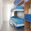 La zona notte è invece costituita da una prima camera con letto matrimoniale, comodini, comò e armadio a tre ante e una seconda camera con due letti a castello. L'ampio bagno è dotato di doccia e lavatrice.