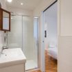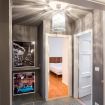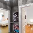 L'appartamento si apre su un ampio ingresso dotato di un moderno sistema di luci. Sulla destra si trova l’ampia cucina attrezzata di tutto il necessario per cucinare e un tavolo con sedie per una colazione veloce.