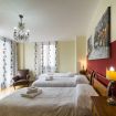 La zona notte è invece composta da tre stanze da letto: una camera da letto matrimoniale dotata di bagno privato con doccia, una seconda camera con letto matrimoniale, e un'ultima camera con tre letti singoli e balcone.