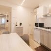La cucina è completamente attrezzata di tutto il necessario per cucinare e dotata di tavolo con sedie. Il bagno è con doccia, bidet e WC.