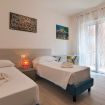 Un corridoio conduce alla zona notte composta da una camera con due letti singoli e scrivania, un ampio bagno con doccia e lavatrice e infine un'ampia camera matrimoniale con balcone. Oltre ad essere particolarmente luminoso, l’appartamento è dotato di balconi.