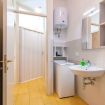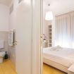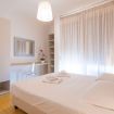 La camera da letto è composta di letto matrimoniale, scrivania e libreria, un armadio e una luminosa porta finestra. Infine il bagno è dotato di doccia, bidet, lavandino con specchio e lavatrice. L’appartamento è inoltre provvisto di aria condizionata, lavastoviglie, microonde, phon e WI-FI.