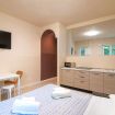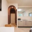 Situato a 200 metri dal Teatro Romano e da Ponte Pietra e a solo 10 minuti a piedi dal centro storico di Verona, l’elegante Dimora Teatro 2 si trova al primo piano di un condominio senza ascensore. L’appartamento, di recente ristrutturazione, è arredato con stile moderno, con alcuni richiami storici come il pavimento e il bagno in marmo, l’ingresso a volta e la parete dipinta di bordeaux in camera da letto che gli conferiscono un tratto estremamente elegante. L’ingresso si apre con un corridoio a volta sulla zona giorno openspace arredata con elegante tavolo in legno bianco con quattro sedie, zona cottura con il necessario per cucinare. Il soggiorno è composto da divano letto da due posti, lampadario e TV a schermo piatto. Attraverso un breve corridoio si entra nella zona notte, composta da un piccolo disimpiego con lavatrice, bagno finestrato e camera da letto matrimoniale. Il luminoso bagno è composto da una grande doccia, specchio e lavandino. Infine la camera da letto è arredata con un ampio letto matrimoniale, un armadio con specchio, una panca e un comò con sgabello.