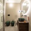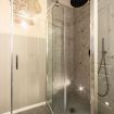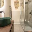 L’elegante bagno è composto da un’ampia doccia, sanitari di design ed è completato anche da una lavatrice nell’antibagno.