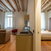 Le caratteristiche travi a vista decorate con un disegno di foglie arricciate nei toni del giallo su fondo rosso e il parquet che rispecchiano la storia dell’edificio vengono valorizzate dal ricercato stile moderno e contemporaneo dei mobili e della cucina di design, pensati per garantire ai nostri ospiti un soggiorno indimenticabile e con il massimo comfort nella meravigliosa città di Verona.