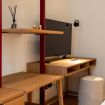 Nella camera oltre al comodo letto matrimoniale arricchito da comodini in legno bordeaux e un pannello in legno con luci regolabili, si trovano una poltroncina, un’ampia armadiatura aperta con cassettiere e una scrivania con smart Tv.